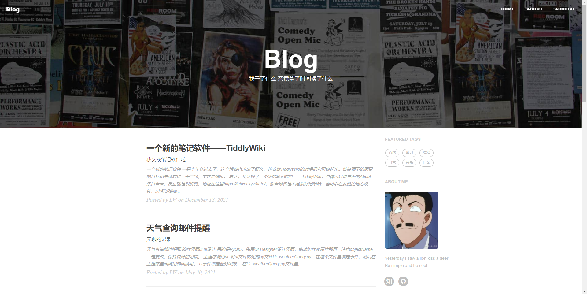 作为一个喜欢折腾电脑的人,这一年做了许多博客的尝试,起因也是因为想要记录生活,结果折腾完了又搁置了orz。后来又新入坑一个领域叫tiddlyWiki,打算用它构建我的个人知识库,还在探索之中,欢迎多多关注呀,以后两个网页都会长期更新!